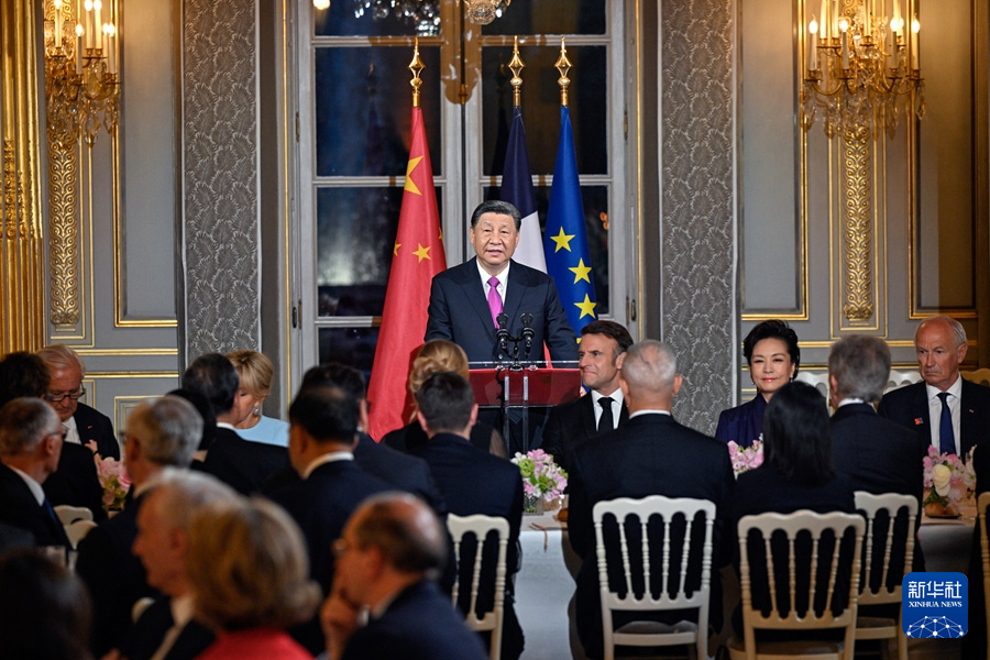 當?shù)貢r間5月6日晚,國家主席習近平和夫人彭麗媛在巴黎愛麗舍宮出席法國總統(tǒng)馬克龍和夫人布麗吉特舉行的歡迎宴會。新華社記者 殷博古 攝當?shù)貢r間5月6日晚,國家主席習2024-05-07